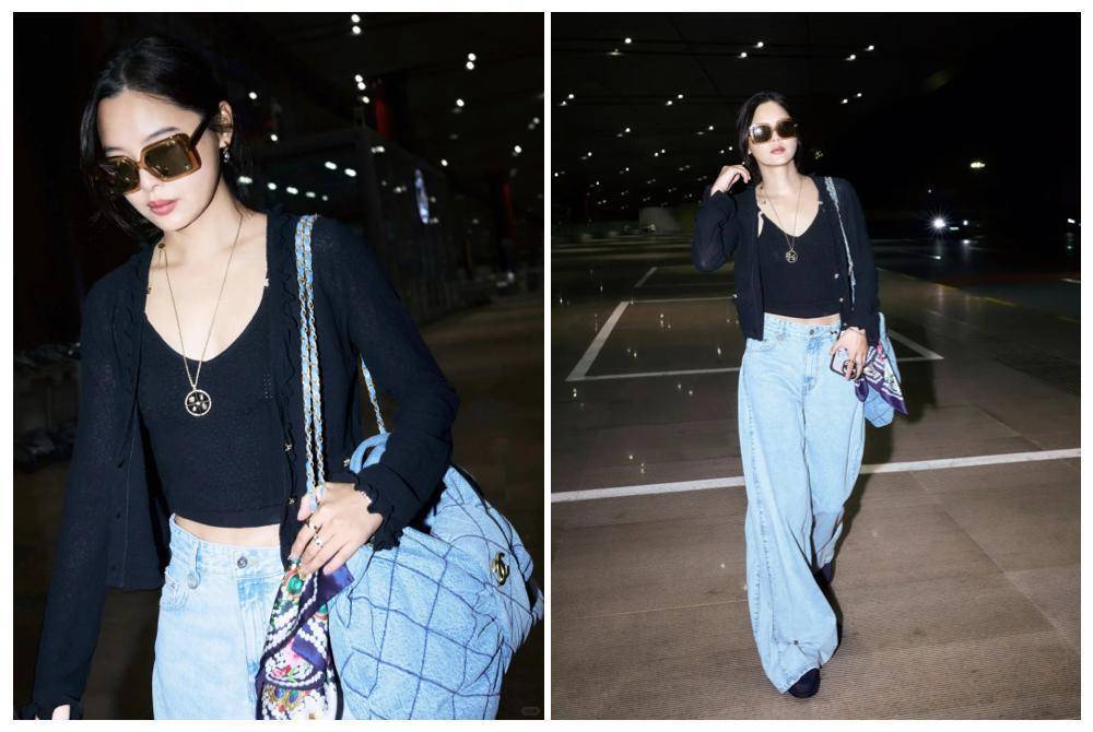 辛芷蕾这身造型远望只是开衫搭配牛仔裤的基础款穿搭,但当镜头放大,开衫与内搭都选用暗纹面料,袖口缀以微张花边,宽松淡色牛仔裤裤边两侧两条裤线让安静的牛仔裤也能穿出萧洒的嗅觉,而裤脚上方更是有小配饰算作收紧裤型的作用,很有静酷的作风。